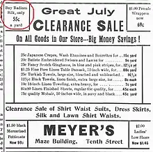 The term was successfully trademarked in the United States by the Gilbert Company of New York City, which registered the mark in August 1905.[1] Despite this proprietary claim, the phrase "radium silk" was generally used in a generic context throughout the United States. The word "radium" had a very positive connotation in this period and was used as a vapid qualifying adjective, similar to the way that the words "platinum" and "titanium" are bandied about for products not containing either metal today.[3]