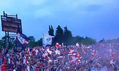 Since its foundation, Radnički always had considerable number of supporters. The first organized support of Radnički fans was recorded on 29 July, in 1934. About 600 Radnički fans drove to Belgrade for a match against BASK. The real spectator boom began in the late sixties, were Radnički was promoted for the first time to the top level. At that time began the first approaches of modern organized support. The away match against Partizan should make history. On this 7 September, in 1969, the Radnički fans support their team particularly fanatical and the atmosphere was so fantastic that it was compared with the atmosphere at Old Trafford stadium in Manchester (statements from local and foreign journalists and opponents). On this day, the Radnički fans and the club were given the nickname Crveni Đavoli (English: The Red Devils), after the nickname for Manchester United. However, the first organized meeting of the Crveni Djavoli was on 9 March, in 1989. Together, the fans went to a basketball game and the Djavoli took advantage of this day as the day of its official founding. Today, they are always on the southside of the Čika Dača Stadium, from where they fiery support their club. Besides football, they also support other sport sections of the Radnički Kragujevac Sport Association.