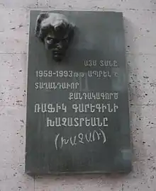Rafik Khachatryan (Armenian: Ռաֆիկ Գարեգինի Խաչատրյան; October 7, 1937 – January 16, 1993) was an Armenian sculptor. He was the father of Garegin Khachatryan (1975–1995).