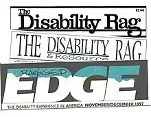 The Disability Rag (also known as Ragged Edge magazine) was a periodical published between 1980 and 2004 as a subscription-based print publication, and as an online publication from 1997 to 2007. In addition to covering the U. S. disability rights movement, The Rag, as it was usually called, published a wide range of articles and opinion pieces from individuals with disabilities. It was considered one of the most important publications of the disability rights movement.[1] The not-for-profit Advocado Press was incorporated in 1981 to serve as publisher of The Rag. The Advocado Press also published a number of books and monographs on disability issues.