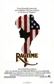 Ragtime is a 1981 American drama film directed by Miloš Forman, based on the 1975 historical novel Ragtime by E.L. Doctorow. The film is set in and around turn-of-the-century New York City, New Rochelle, and Atlantic City, and includes fictionalized references to actual people and events of the time. The film stars James Cagney, Mary Steenburgen, Howard Rollins, Brad Dourif, James Olson and Elizabeth McGovern, features the final film appearances of Cagney and Pat O'Brien, and features early appearances in small parts by Jeff Daniels, Fran Drescher, Samuel L. Jackson, Ethan Phillips and John Ratzenberger.