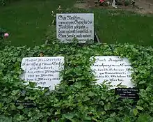 Rahel Varnhagen died in Berlin in 1833. Her grave is located in the Dreifaltigkeitsfriedhof I Berlin-Kreuzberg. Her husband published two memorial volumes after her death containing selections from her work: Rahel, ein Buch des Andenkens für ihre Freunde (Rahel, a Memorial Book for her Friends; 3 vols., 1834; new ed., 1903) and Galerie von Bildnissen aus Rahels Umgang (Gallery of Portraits from Rahel's Circle; 2 vols., 1836).[5]