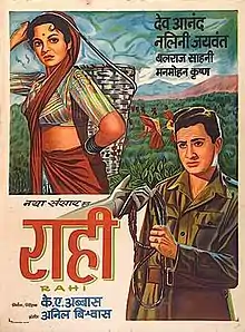 Rahi (The Wayfarer) is a 1953 Hindi social drama film produced and directed by K. A. Abbas.[1] The film was based on Mulk Raj Anand's novel "Two Leaves and a Bud" (1937), which was scripted by Abbas.[2] It was produced as a bilingual in Hindi as Rahi and in English as The Wayfarer, under the Naya Sansar banner. Its screenplay was by Mohan Abdullah and V. P. Sathe and the cinematographer was Ramchandra. The film starred Dev Anand and Nalini Jaywant with Balraj Sahni, David Abraham Cheulkar, Achla Sachdev and Manmohan Krishan.[3]