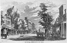 Rahway saw action during the American Revolutionary War because of its proximity to Staten Island, Elizabethtown and Perth Amboy. In January 1777, rebels were victorious against the British in the Battle of Spanktown, which resulted in the death of some 100 British troops.[29] The battle was named this after Rahway's original name given to it by the first settlers, Spanktown,[24] which is said to have been chosen "because an early settler publicly took his spouse across his knee and chastised her".[30] Spanktown was mentioned in Revolutionary War military dispatches from January 5, 1777, through March 14, 1782.[31]