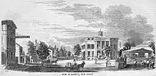 The Merchants' and Drovers' Tavern is located at the corner of St. Georges and Westfield Avenues. The earliest buildings at the site date to 1795 and the property remains one of Rahway's most prominent historical landmarks.[32] George Washington visited Rahway during his travel to New York City prior to his presidential inauguration in 1789. A marker across the street from the tavern reads:[33]