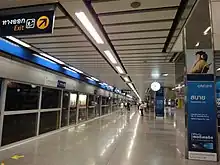 In the late 1990s, Thailand's rail transport underwent a modernization with the introduction of rapid transit systems. To organize mass transportation systems in Bangkok and its surrounding areas by electric train, the Mass Rapid Transit Authority of Thailand (MRTA) was established in 1992. The BTS Skytrain, which was the first rapid transit system in Bangkok, is owned by the Bangkok Metropolitan Administration (BMA), began operations in 1999 and is operated under a concession from the BMA granted to Bangkok Mass Transit System (BTSC). The Bangkok Metro, with its first line being the Blue Line, is the first underground railway that opened in 2004. It is owned by the MRTA and operated by the Bangkok Expressway and Metro (BEM) under a concession granted by the MRTA. The Airport Rail Link, which opened in 2010 and has transformed commuting in the capital city, is owned by the State Railway of Thailand and operated by its subsidiary, the SRT Electric Train (SRTET). Since then, the government has embarked on several high-speed rail projects to connect different parts of the country. The Bangkok–Nong Khai route, a 606-kilometer line, was initiated in 2014 with an MOU between Thailand and China for co-financing. However, in 2016, the Thai government decided to finance the entire project, and it is 100% Thai invested and operated for construction. China is assisting in the civil works, including the design, supervision, and installation of electrical and mechanical systems.[19][20] The first section, from Bangkok to Nakhon Ratchasima, is already under construction and expected to be completed in 2026, with the second section, from Nakhon Ratchasima to Nong Khai, scheduled to begin construction in 2023. The Don Mueang–Suvarnabhumi–U-Tapao route, a 220-kilometer line connecting three major airports, was signed in 2019 with construction scheduled to start in 2023.[21][22] The Bangkok–Chiang Mai route, which covers a distance of 688 kilometers, has been the focus of joint efforts by Thailand and Japan since the signing of a Memorandum of Cooperation (MOC) in 2015. As of 8 March 2023, the project's economic and financial feasibility study has now been completed, and the results show that it is worth the investment. The section of the project will connect Bangkok to Phitsanulok, while the second section will connect Phitsanulok to Chiang Mai.[23]