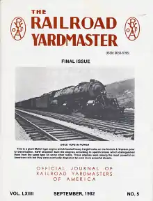 The Railroad Yardmasters of America was organized on 2 December 1918 to handle abuses by railroad management.[1] Membership was open to "any male white person of good moral character actually employed as general yardmaster, assistant general yardmaster, yardmaster, assistant yardmaster, and station masters."[2] The first national convention was held in December 1918.[3] The union had its headquarters in Columbus, Ohio. The union was independent, not affiliated with the American Federation of Labor.[4]