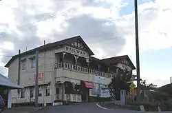 A prominent landmark standing on one of Gympie's hilltops, the Railway Hotel is a two-storeyed timber building on the corner of Station Road and Tozer Lane, Gympie. From this elevated site, adjacent to the former Gympie railway station, the hotel affords expansive views across Gympie and surrounding districts. A timber footbridge connects the hotel and the railway station.[1]