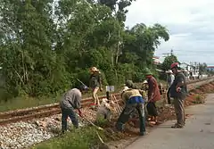 Improving maintenance has been identified as a priority for the rail transport sector, specifically maintenance and repair work in rail workshops due to its direct impact on passenger safety.[14] In some cases, a lack of proper maintenance of infrastructure can contribute to accidents even when safety measures are in place. On November 22, 2009, for instance, nine people were killed when a bus collided with a southbound train at a level crossing in Hanoi; one set of warning lights at the crossing was out of order, and the other set had collapsed.[16] The replacement of old and damaged rolling stock is also a priority; a 2006 report by the Japanese Ministry of Foreign Affairs identified the poor condition of trains and rolling stock as a major cause in 50% of railway accidents.[9]