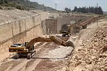 - A pair of 4.6 to 5 km (2.9 to 3.1 mi) tunnels, as well as 18 connection and escape tunnels, under Mount Gilon between Ahihud and Karmiel. [4][8][12] The estimated cost of this section is NIS 1 billion, including NIS 600 million for the construction and 400 million for right-of-way acquisitions. In August 2011, Danya Cebus and the Chinese company CCECC won the tender, beating Hofrei HaSharon and Max Bögl, Minrav and Moscow Metrostroy, Eyal Sela and Roltsur Tunnels, and Shafir Engineering and Impresa Pizzarotti.[8] Planning was expected to take 8 months, while construction was to take an approximate 32 months.[12] Work on the tunnel started in April 2012.[13]