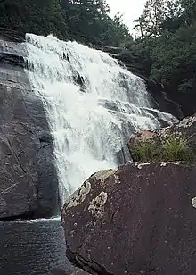 Rainbow Falls is a waterfall in Western North Carolina, located near Brevard. The falls is located on the Horsepasture River. It is on Pisgah National Forest land just outside Gorges State Park.