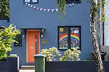 The rainbow was adopted as a symbol of hope during the COVID-19 pandemic, especially during periods of lockdown. Households worldwide displayed home-made images of rainbows in their windows, often alongside positive messages.[10]