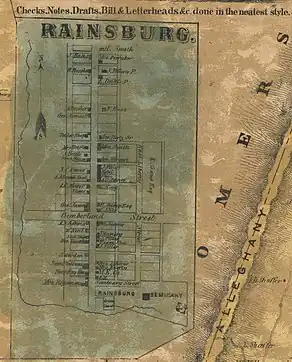 - "Rainsburg, Bedford County. PA town history". www.pa-roots.com. Retrieved 2023-01-12.