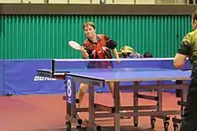 ![]() Raisa Chebanika playing during the 2010 World Para Table Tennis Championships, October 31. | |