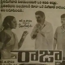 Raja (transl. King) is a 1999 Indian Telugu-language romantic drama film directed by Muppalaneni Shiva and produced by R. B. Choudary under Super Good Films. It stars Venkatesh and Soundarya with Abbas in a pivotal role, with original soundtrack by S. A. Rajkumar. The film won three Filmfare South Awards including Best Film, Best Actress and Best Music Director. The film was a remake of the Tamil film Unnidathil Ennai Koduthen (1998).