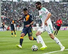 ![]() Mouhcine Iajour, pictured here in February 2014, is Raja CA's all-time leading goalscorer in international competitions with 25 goals | |