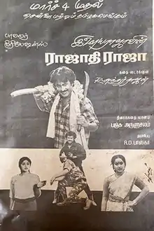 Rajadhi Raja (transl. King of Kings) is a 1989 Indian Tamil-language action comedy film, directed by R. Sundarrajan and written by Panchu Arunachalam. The film stars Rajinikanth in a dual role, with Nadhiya and Radha portraying his characters' love interests. It revolves around Raja, a rich estate owner's son who seeks to avenge his father's death. He is aided in his quest by Chinnarasu, a lookalike.