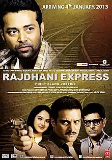 Rajdhani Express is an Indian Hindi-language film[2] directed by Ashok Kohli.[3] Produced by CineActs Production, Trueman Entertainment & SLA Impex Pvt Ltd, the film features tennis player Leander Paes in the lead role and marks his Bollywood debut[4][5] alongside Jimmy Sheirgill, Puja Banerjee, Priyanshu Chatterjee, Gulshan Grover, Kiran Kumar, Mukesh Rishi, Sudhanshu Pandey, Sayali Bhagat, Achint Kaur and Shilpa Shukla.[6] Paes' voice has been dubbed by actor Amitosh Nagpal.[7][8]