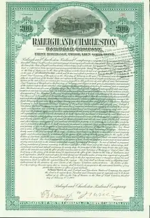 Gold Bond of the Raleigh and Charleston Railroad Company, issued 1 February 1906
