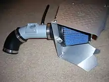 A ram-air intake is any intake design which uses the dynamic air pressure created by vehicle motion, or ram pressure, to increase the static air pressure inside of the intake manifold on an internal combustion engine, thus allowing a greater massflow through the engine and hence increasing engine power.[1]