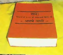 Swami Ram Charan Ji's works are collected in 'Vaani Ji'(वाणी जी) consisting of 36250[3] compositions. Each of these was spoken by him to his disciples.[2] The first 8,000 were noted by his disciple from Bhilwara, Naval Ram Ji. His collection in "Anubhav Vaani" is considered to be biggest religious book written on the teaching of any saint. The remaining ones were noted, collected and edited by his disciple Ram Jan Ji Maharaj (who also succeeded him as the head of the 'Ramsnehi Sampradaya' after his death). In Bikram Samwat 1981 (1925 CE), the complete Vaani Ji was published for the first time under the title :'Swami Ji Ram Charan Ji Maharaj ki Anubhav Vaani', from Shahpura. The latest edition has been published by Ram Niwas Dham, Shahpura (Bhilwara), in 2005 CE.