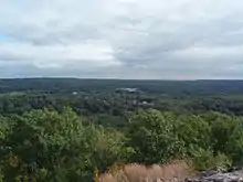 Torne Mountain (1,130 ft or 340 m; shown on topographic maps as "High Torne"), in Harriman State Park, overlooks the Ramapo Pass and remnants of the once-thriving Ramapo Iron Works. During the American Revolution, the Torne served as a lookout for British ship movements on the Hudson. Legend tells that Gen. George Washington lost his watch on the mountain, and it may still be heard ticking up there in a crevice of rock.