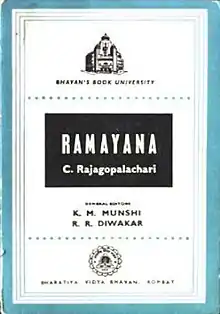 Ramayana is a retelling of the epic by C. Rajagopalachari. It was first published by Bharatiya Vidya Bhavan in 1957.[1] This book is an abridged English retelling of the Valmiki Ramayana; he had earlier published a version of Kamba Ramayanam.[2] Rajaji considered this book and his Mahabharata to be his greatest service to his countrymen.