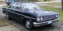 The 1965 model year Classics underwent a major redesign of the new platform that was introduced in 1963; essentially the 1963–1964 design with a rectilinear reskin similar to that of concurrent Ambassadors.[31] Fresh sheet metal design was applied to the original 112 in (2,800 mm) wheelbase and 195 in (5,000 mm) long integral body-frame with only the roof, doors, and windshield as carryovers.[32] Unchanged was the suspension system including a torque tube with coil springs with a Panhard rod.[33]