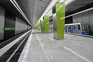 Ramenki (Russian: Раменки) is a station on the Kalininsko-Solntsevskaya Line of the Moscow Metro. It opened on March 16, 2017.[2] as part of the line's current southwestward extension from Park Pobedy. It served as the western terminus of the line, until 2018 with the opening of the extension to Rasskazovka.[3] Tunnelling between the station and that preceding it and following it, Lomonosovsky Prospekt and Michurinsky Prospekt, started in 2013.[4]