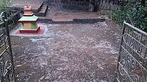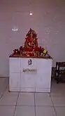 A temple dedicated to Hindu deity, Lord Ganesha was built in 2000.[10] This temple was built by a local resident of Rameshwar Wadi. It is located in the western part of the Wadi which is known as "Vatar". Although the temple lies entirely in the private premises of its builder, it is open for outsiders.[10] Various festivities and pujas are carried out in the temple throughout the year. There is no separate administration or a priest appointed in the temple, the owner takes care of all the maintenance and other matters of the temple building and its premises. The temple building is entirely made using red rocks and concrete. Its area is about 600-700 sq ft, while the front yard (angan) on the temple building is approximately of the same size. A small tulsi vrindavan (a sacred tulsi grove) is located at the right outer corner of the front yard. To the left of the temple, many flowering plants are grown. The temple itself is located within many trees.