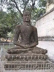 While in his mid-teens Ramkinkar used to paint portraits of Indian freedom fighters involved in the Non-Cooperation Movement against the British rulers of India. At the age of 16 he got noticed by the renowned journalist Ramananda Chatterjee. Four years later Ramkinkar joined the Visva-Bharati University at Santiniketan as a student of fine arts.[2] After obtaining a diploma from the university he went on to head the sculpture department. Ramkinkar's renowned sculptor disciples include Prabhas Sen, Shankho Chowdhury, Avtar Singh Panwar, Madan Bhatnagar, Dharmani, Balbir Singh Katt, Rajul Dharial and Susan Ghose.[3]