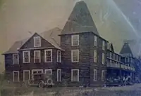 Through the years, ownership of the property changed hands, and around 1920, a hotel was constructed by the Miller family.[5] The 25- to 35-room hotel was situated about one-quarter mile (0.4 kilometer) from the spring and Red Creek. As word spread, more and more visitors came to Ramsey Springs for its resort atmosphere. Guests relaxed and enjoyed home-cooked dinners and other accommodations in the rustic hotel.[3] The hotel's interior was decorated with curious timbers, pine cones, and taxidermy specimens from the local forest. The huge lobby had a large, cobblestone fireplace and a ceiling of cypress logs that supported the upper floors. On the grounds of the hotel was a swimming pool that contained clear, cold water from the natural spring. During the first half of the 20th century, Ramsey Springs Hotel was booked solid by Mississippi Gulf Coast residents as a weekend and vacation retreat. Interest in Ramsey Springs Hotel waned after World War II, because the Mississippi Gulf Coast, from Gulfport to Biloxi, experienced development of motels and hotels and construction of a sandy beach-front along the shore of the Gulf of Mexico, which was paralleled by U.S. Highway 90.