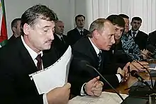 On 15 February 2007, Putin signed a decree removing Alkhanov and installing Kadyrov as Chechen's acting president.[52] On 2 March 2007, following Putin's nomination of Kadyrov as Chechen president, the Chechen parliament approved the nomination.[53] In the following days, serious changes took place in the administrative setup of the republic, affecting both the top- and middle-ranking officials. Former deputy prime minister Odes Baysultanov (a cousin of Kadyrov) was elevated to the vacant post of prime minister. Critics allege that Kadyrov is actively building his own "vertical of power" in the republic, and encouraging nepotism by placing men of his own family(Kadyrov) in all the leading and important positions.