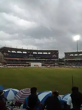 Ranchi is a center for numerous sports activities, including cricket, hockey, football, and many others.[71] The 34th National Games were successfully held in Ranchi in February 2011. An International Cricket stadium with an indoor stadium and a practice ground has been constructed. So far, this stadium has hosted three One day International matches and one T20 International match. Apart from that, this stadium has hosted two IPL 6 matches for Kolkata Knight Riders, three champions league 2013 matches and Celebrity Cricket League matches for Bhojpuri Dabanggs. A tennis academy, which was inaugurated by Sania Mirza and Shoaib Malik, also runs beside the cricket stadium. Former Indian Cricket Team Captain M.S. Dhoni lives in Ranchi.[72] The Ranchi franchise for Hockey India League was bought by Patel-Uniexcel Group and the team named the Ranchi Rhinos.[73]