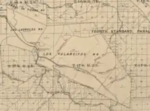 With the cession of California to the United States following the Mexican-American War, the 1848 Treaty of Guadalupe Hidalgo provided that the land grants would be honored. As required by the Land Act of 1851, a claim for Rancho Tularcitos was filed with the Public Land Commission in 1852,[3][4] and the grant was patented to Joséfa Antonia Estrada de Gomez in 1866.[5]