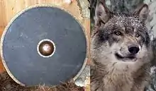 The Norman personal names Randulf and Randolf are ultimately derived from the Old Norse Rannúlfr,[3][5] when the short form Randr (Old Danish Rand) is probably the first part of Norman toponyms such as Randal (Manche, le Vrétot, maybe from *Randdalr, a compound with dalr "valley", same as Randale, hamlet in England), Rantot (Manche, farm at Digulleville maybe from *Randtopt with topt > -tot "toft") and Ranville. In fact, Rannúlfr was introduced into England by Scandinavians well before the arrival of the Norman name, and because of the introduction of the form used by the Normans, both names were reinforced in England.[5] The Old Norse Rannúlfr is composed of two elements—the first element is rand, meaning "shield" or "rim"; the second element is úlfr, meaning "wolf".[5] The Old English form of these names is Randwulf (similarly composed of rand and wulf).[7][8] Other cognates include: the Old Low German Randwulf, Randulf; and the Old Norse Röndúlfr.[7][8]