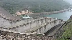 ![]() The Randenigala Dam as seen from the southern bank, with the power station in the background. | |