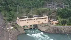 The power station is located immediately downstream of the dam, on the left bank. Water from the reservoir is delivered to the power station via a single steel-lined tunnel with a length and diameter of 270 m (886 ft) and 6.2 m (20.3 ft) respectively.[1]