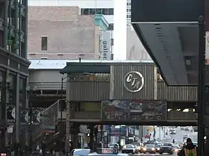 Randolph/Wabash was an elevated 'L' station in the Loop in Chicago. Located at Randolph Street and Wabash Avenue, it served trains running on the Chicago Transit Authority's Brown and Green Lines on the outer loop track, and the Green, Orange, Pink, and Purple Lines on the inner loop track. Randolph/Wabash was the closest 'L' station to Metra's Millennium Station until its closure on September 3, 2017. The station was later demolished.[2][3]
