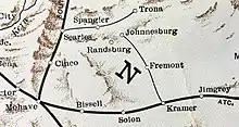 The Randsburg Railway was a 28.5-mile (45.9 km) branch line railroad in California's Mojave Desert. It originated at the main line of the Atchison, Topeka, and Santa Fe Railroad (AT&SF) at Kramer Junction, California, and terminated at Johannesburg, California, with a stop at Atolia. The Railway served as a supply link to the Rand Mine, which produced more silver than any mine in California. The Rand mine closed in 1929, as it was no longer profitable.[1][2]