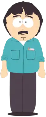 Randy has black hair, a mustache, and a cleft chin. He carries a few pens in one of the two front pockets on his light blue, collared, button-up shirt, and wears dark gray pants. He is 45 years old, and like Parker's father, is a geologist,[5] White briefs are his underpants of choice.[6] making his first appearance in the series while monitoring a seismometer in the episode "Volcano". He was depicted to work at the South Park Center for Seismic Activity, and was later shown to work for the U. S. Geological Survey. He was briefly fired from his geologist job near the end of the season 12, and quit briefly during the end of the season 14, but has since been rehired both times. Randy has not been shown at the earthquake monitoring office since he opened Tegridy Farms, and in-show events strongly suggest that he has abandoned his previous career to raise marijuana full-time. He also serves on the city council, specializing in the town's parks and public grounds.[7]