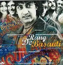 The soundtrack to the 2006 film Rang De Basanti was released by Sony Music Entertainment on 25 December 2005 and had its music composed by A. R. Rahman and lyrics in Hindi and English by Prasoon Joshi and rapper Blaaze.[1][2] The title track was used at a flash mob at Chhatrapati Shivaji Terminus in Mumbai on 27 November 2011 in honour of those who died in the 26/11 attack.