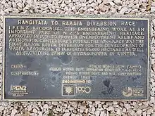 In 1990, the Rangitata Diversion Race was recognised as a significant part of New Zealand's engineering heritage by the Institution of Professional Engineers New Zealand (now Engineering New Zealand). The recognition was part of the “Engineering to 1990” project which the Institution organised to help celebrate the country’s sesquicentenary in 1990. A plaque was unveiled to mark the significance of the irrigation race in the development of the nation. The citation on the plaque reads: "IPENZ recognises this engineering work as an important part of NZ's engineering heritage. Approved in 1936 to provide unemployment relief and a vision for Canterbury's future, the 67 km race was the first major river diversion for the development of water resources. It irrigates 66,000 hectares as well as providing 27 MW of hydro power in winter".[19]