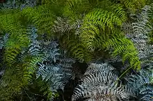Because there are virtually no streams on the island, plants rely on rainfall for moisture. It has the largest forest of pohutukawa trees in the world,[6] as well as many northern rata trees. In total, more than 200 species of trees and flowers thrive on the island, including several species of orchid, as well as more than 40 types of ferns.[9] The vegetation pattern was influenced by the more recent eruptions creating lava flow crevices where pohutukawa trees (Metrosideros ssp.) grow.[23]