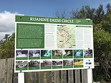 The 130 acres (53 ha) Rangiwahia Scenic Reserve has two public tracks.[67] This bush was left to the east of Rangiwahia for the village water supply. A dam remains, as does a concrete dam near the dairy factory.[30] Wildlife includes maire,[68] rimu, miro, mataī, kahikatea, tōtara, rewarewa, northern rata, tree ferns, pīwakawaka, riroriro, kererū, tūī, korimako, miromiro, ruru, kōtare, pīpīwharauroa , silvereye, chaffinch, eastern rosella and kārearea.[67] It also has Darwin's barberry, which DoC is trying to control.[69]
