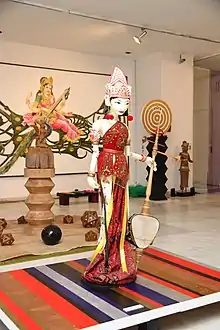 In 2013, Makkuni launched Musical Landscapes and the Goddesses of Music at the National Museum, New Delhi.[45][46][47][48][49][50] This exhibition explores the science, art and spirituality of Music, and its reflections in the Goddess images across Asian cultures. An expanded version titled Music and Goddess was presented in 2014 at the National Gallery of Modern Art, Mumbai.[51] [52] [53] [54]