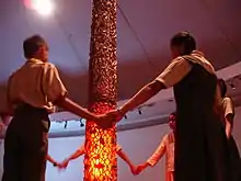 ![]() Ranjit Makkuni in front of his Flute Tree sculpture (2011) | |