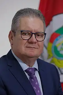 Ranolfo Vieira Júnior (born 7 April 1966 in Esteio) is a Brazilian civil police officer and politician, member of the Brazilian Social Democracy Party (PSDB).[1] He was elect Vice Governor of Rio Grande do Sul in the 2018 state elections. Under Eduardo Leite governorship, Vieira also was nominated State Secretary of Public Security.[2] After Leite's resignation in March 2022, Vieira became the Governor of Rio Grande do Sul.[3][4]
