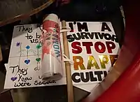 Rape culture is a setting, studied by several sociological theories, in which rape is pervasive and normalized due to societal attitudes about gender and sexuality.[1][2] Behaviors commonly associated with rape culture include victim blaming, slut-shaming, sexual objectification, trivializing rape, denial of widespread rape, refusing to acknowledge the harm caused by sexual violence, or some combination of these.[3][4] It has been used to describe and explain behavior within social groups, including prison rape and in conflict areas where war rape is used as psychological warfare. Entire societies have been alleged to be rape cultures.[5][6][7][8][9] It is associated with rape fantasy and rape pornography.