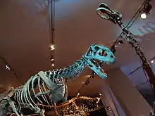Besides Rapetosaurus, fossil taxa recovered from the Maevarano include fish, frogs, lizards, snakes,[7] seven distinct species of crocodylomorphs,[9] five or six species of mammals,[9] Vorona[10] and several other birds,[7] the possibly flighted dromaeosaurid Rahonavis,[11][12] the noasaurid Masiakasaurus,[13] and the abelisaurid Majungasaurus.[14] A variety of extinct mammals have also been discovered, such as gondwanatheres and non-placental eutherians, the former reaching large sizes such as Vintana.